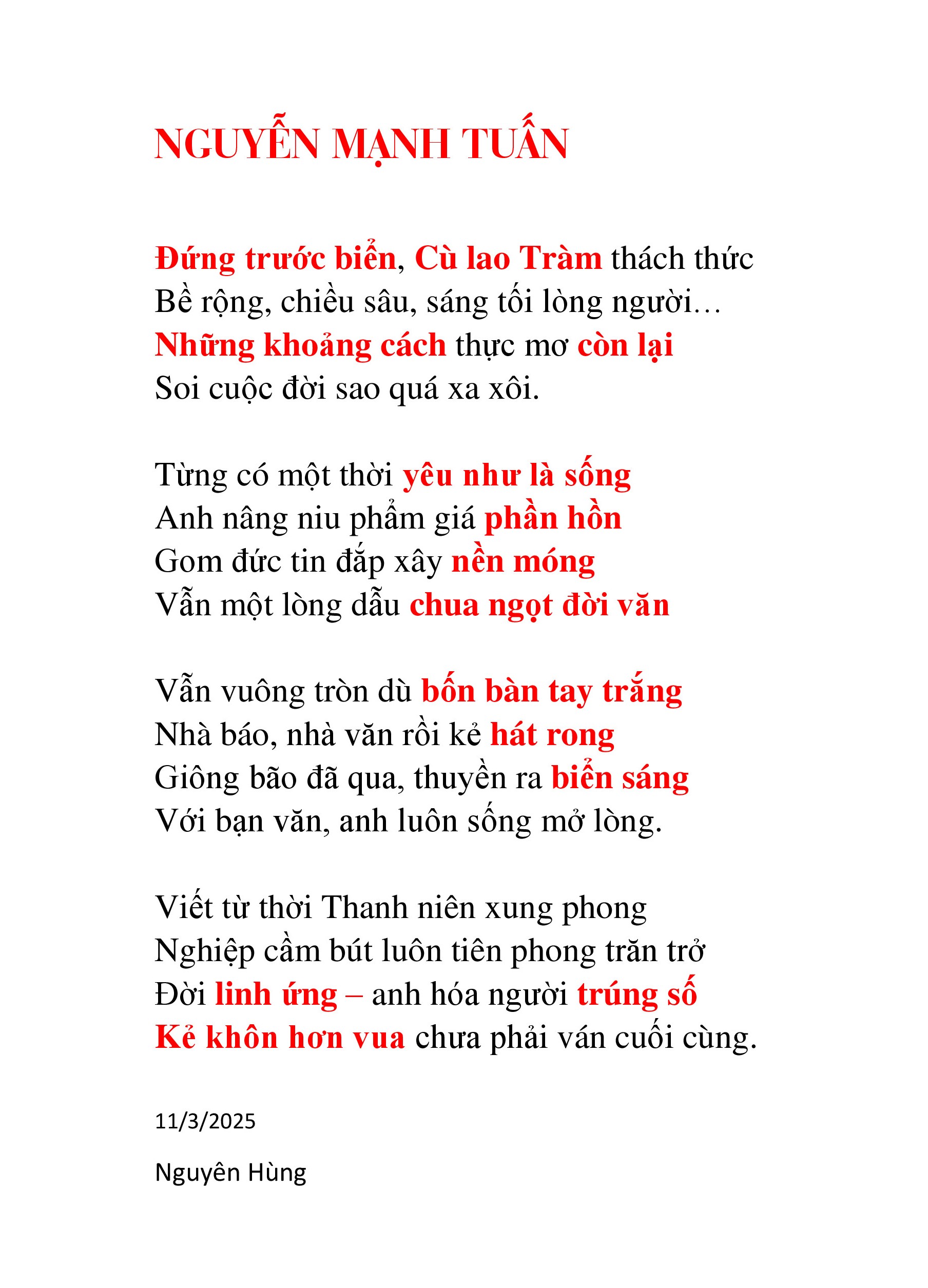 Nguyên Hùng – Tiếng cười và nỗi đau với lục bát 2 câu