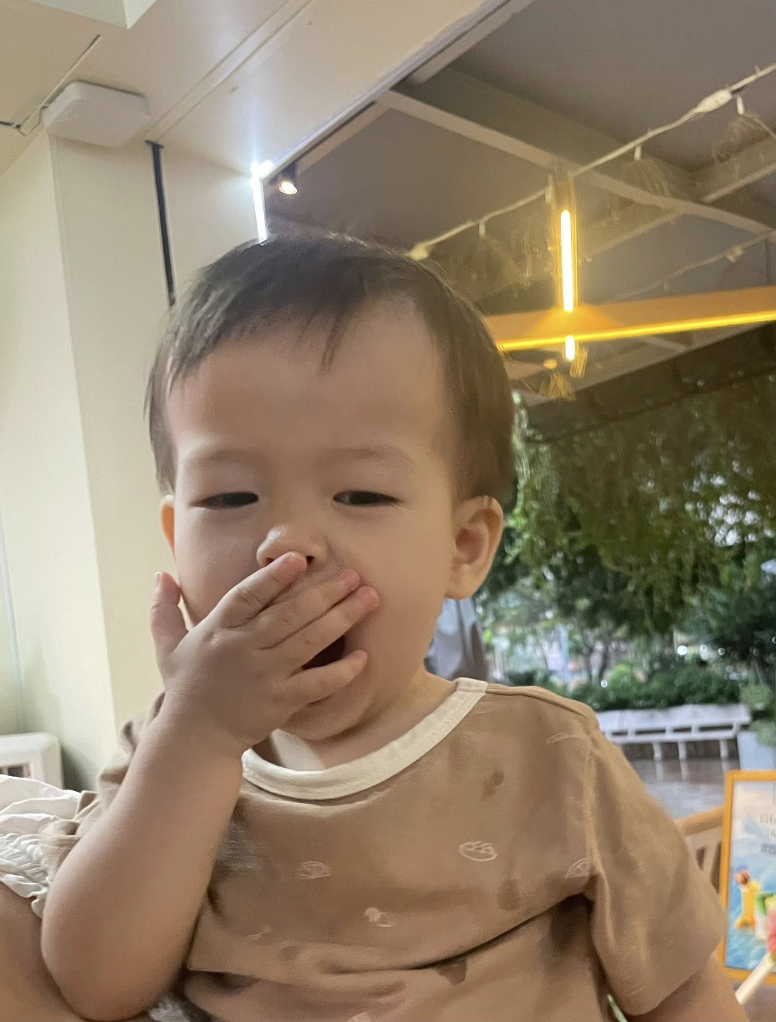 Bé Hoàng Đan đi dự buffet với các ông bà nội ngoại.