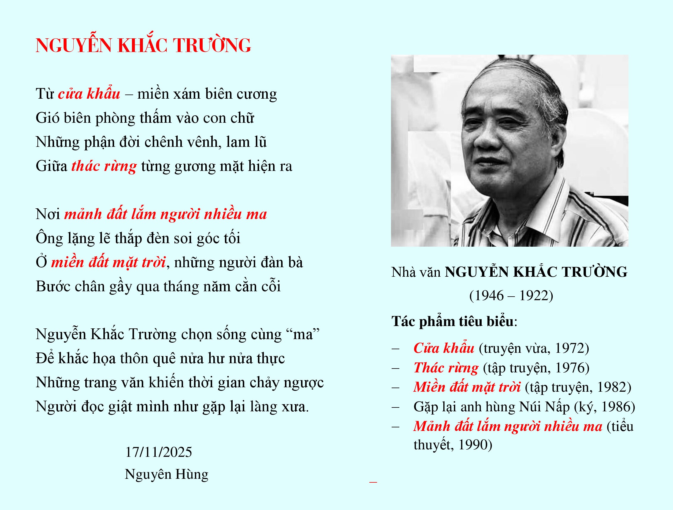 Nguyễn Khắc Trường – nhà văn chọn viết về những góc khuất thôn quê bằng thứ ánh sáng riêng: dịu, sâu và đầy “ma lực”. Bài ký họa này là một lát cắt để hiểu vì sao văn chương ông vừa ám, vừa thật như đời.