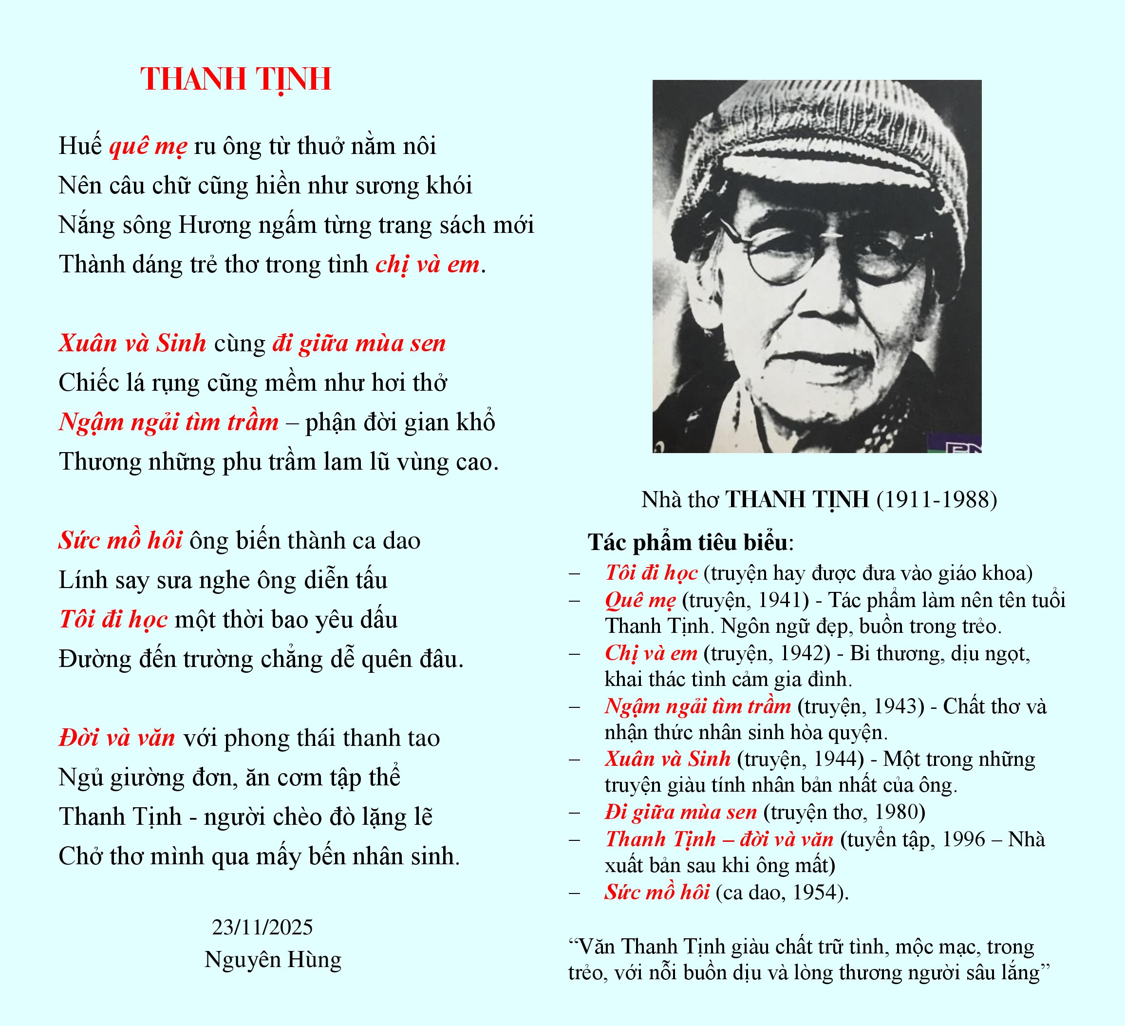 - Thanh Tịnh - người chèo đò lặng lẽ