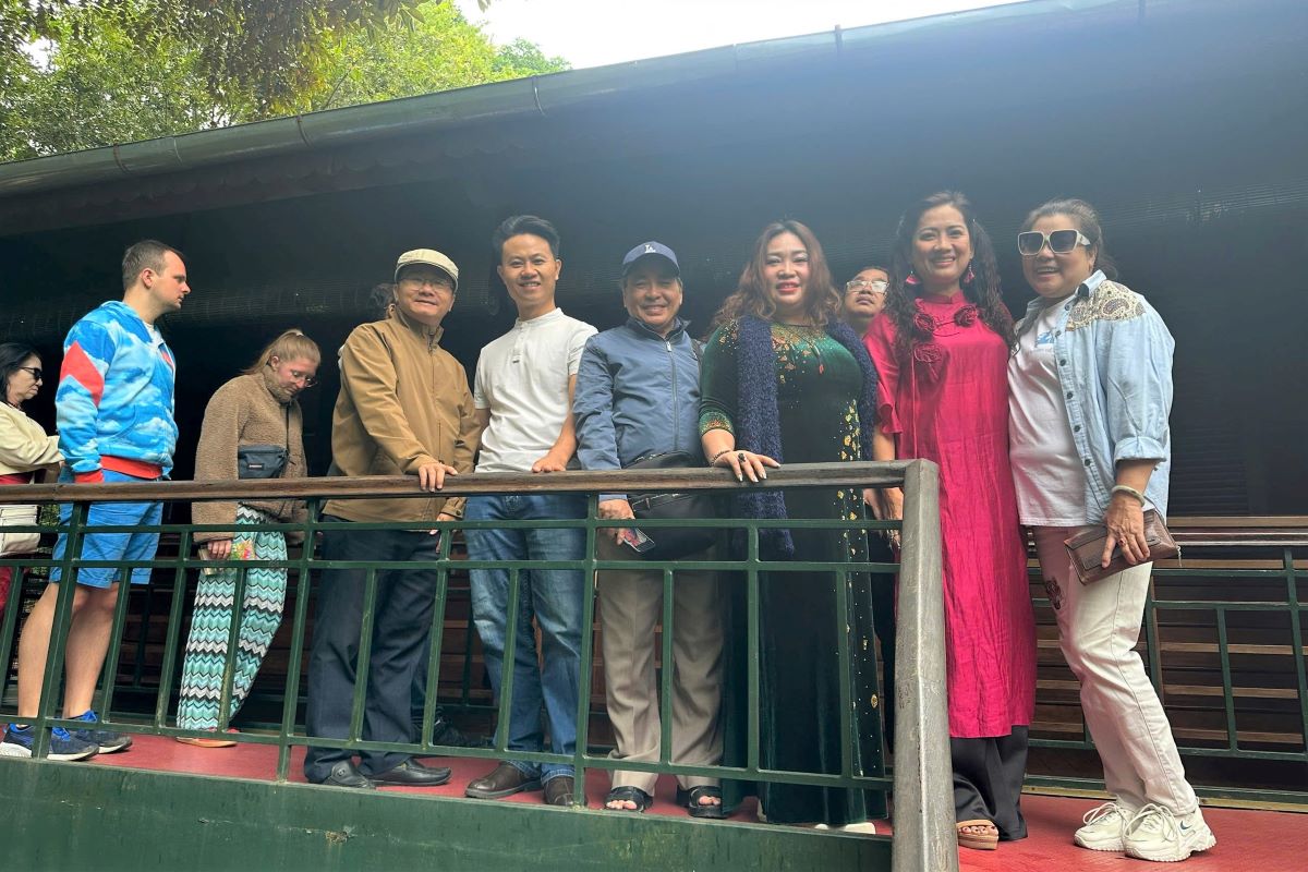 Các nhà văn TPHCM thăm nhà sàn của Bác Hồ - Ảnh: Minh Quân