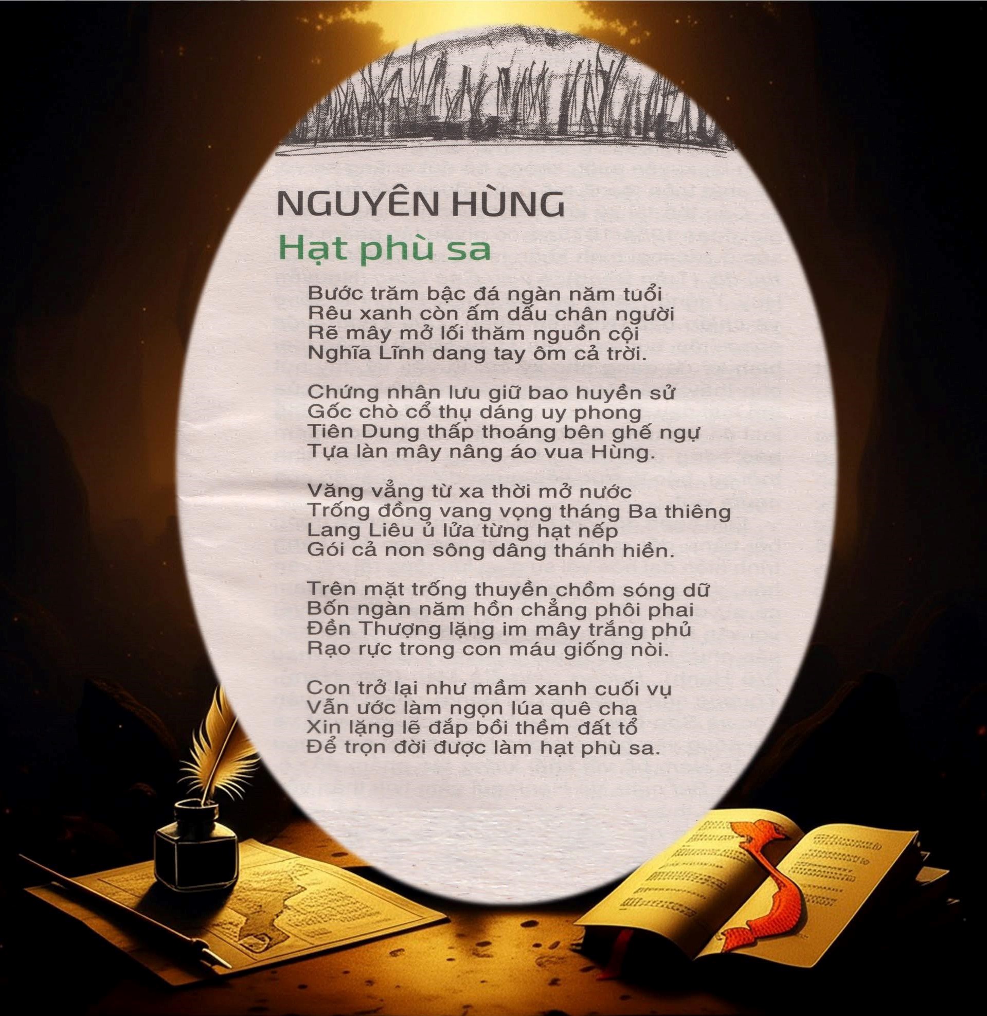 Giữa nhịp sống hối hả, có những giai điệu ngân vang chạm đến sâu thẳm tâm hồn, đánh thức mạch nguồn tự hào dân tộc. Hai ca khúc 'Hạt phù sa' và 'Tiễn mùa xưa' dù chỉ là những tác phẩm âm nhạc do AI sáng tạo từ lời thơ Nguyên Hùng, nhưng về cơ bản thể hiện được tình cảm về cội nguồn, về non sông gấm vóc của người làm thơ. Xin cảm ơn bạn đồng môn Trần Ngọc Toàn và thân mời các bạn cùng nghe và cảm nhận!
