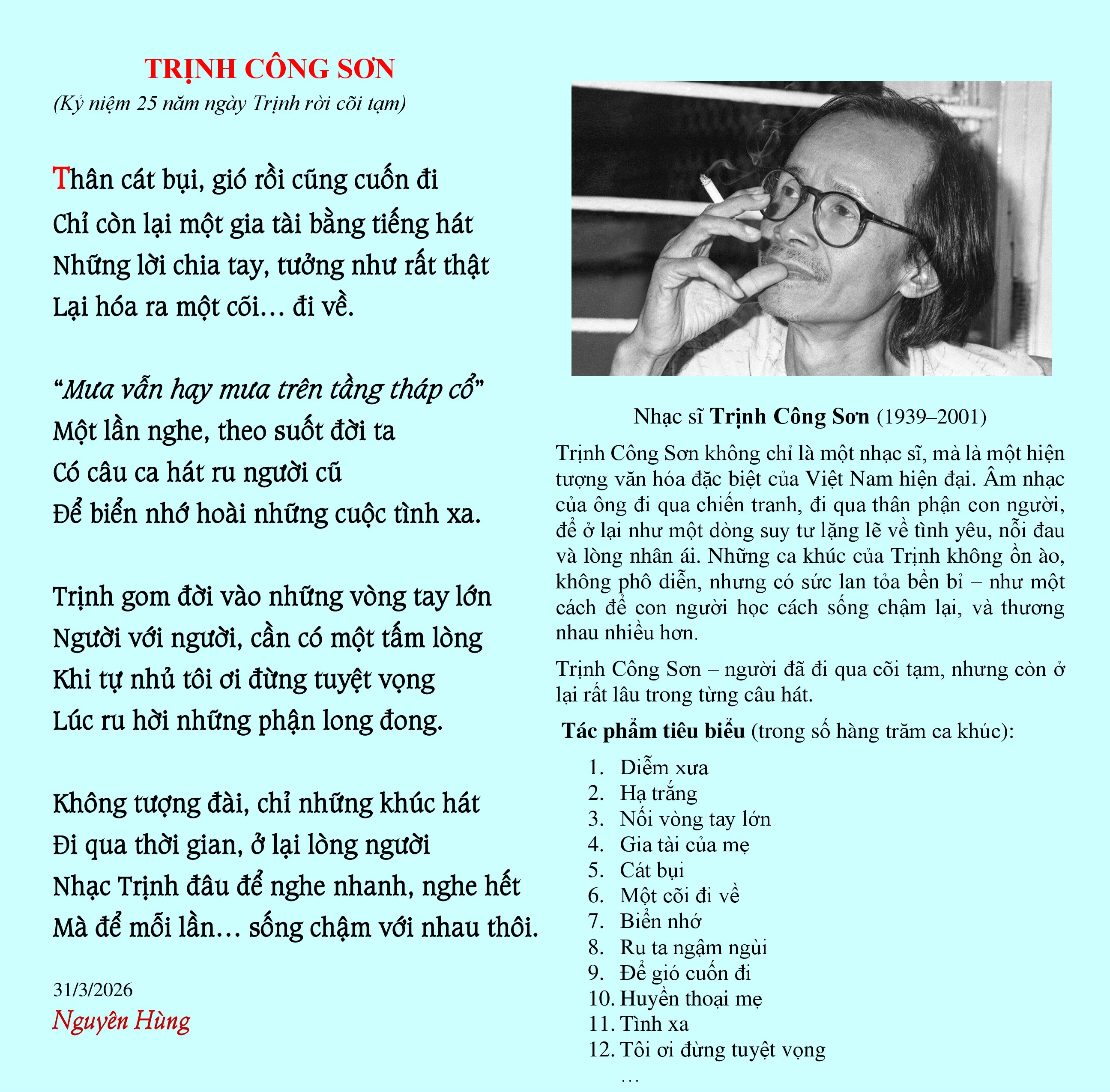 25 năm Trịnh Công Sơn rời cõi tạm.