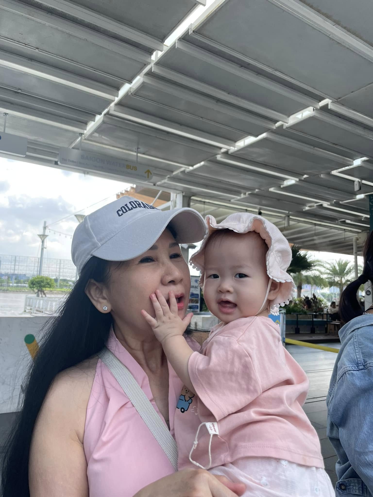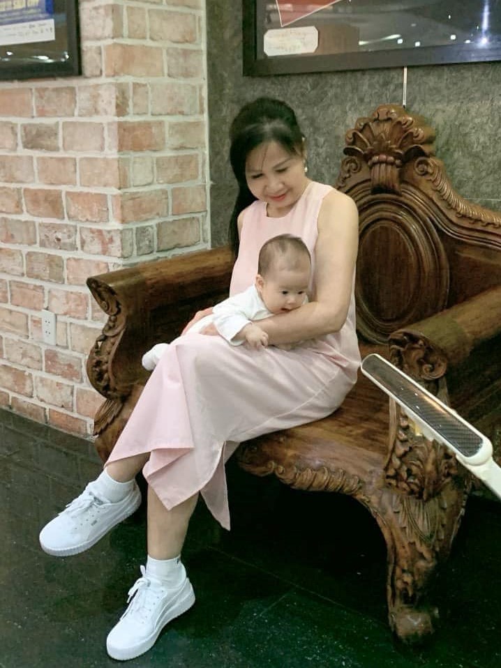 2 cháu ngoại: Lê Vy (bìa trái), Hoàng Nhi (ngồi giữa hàng đầu)