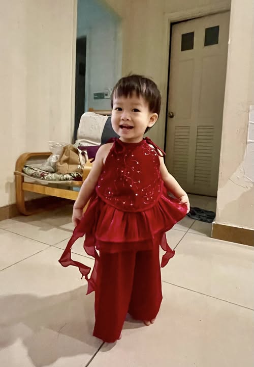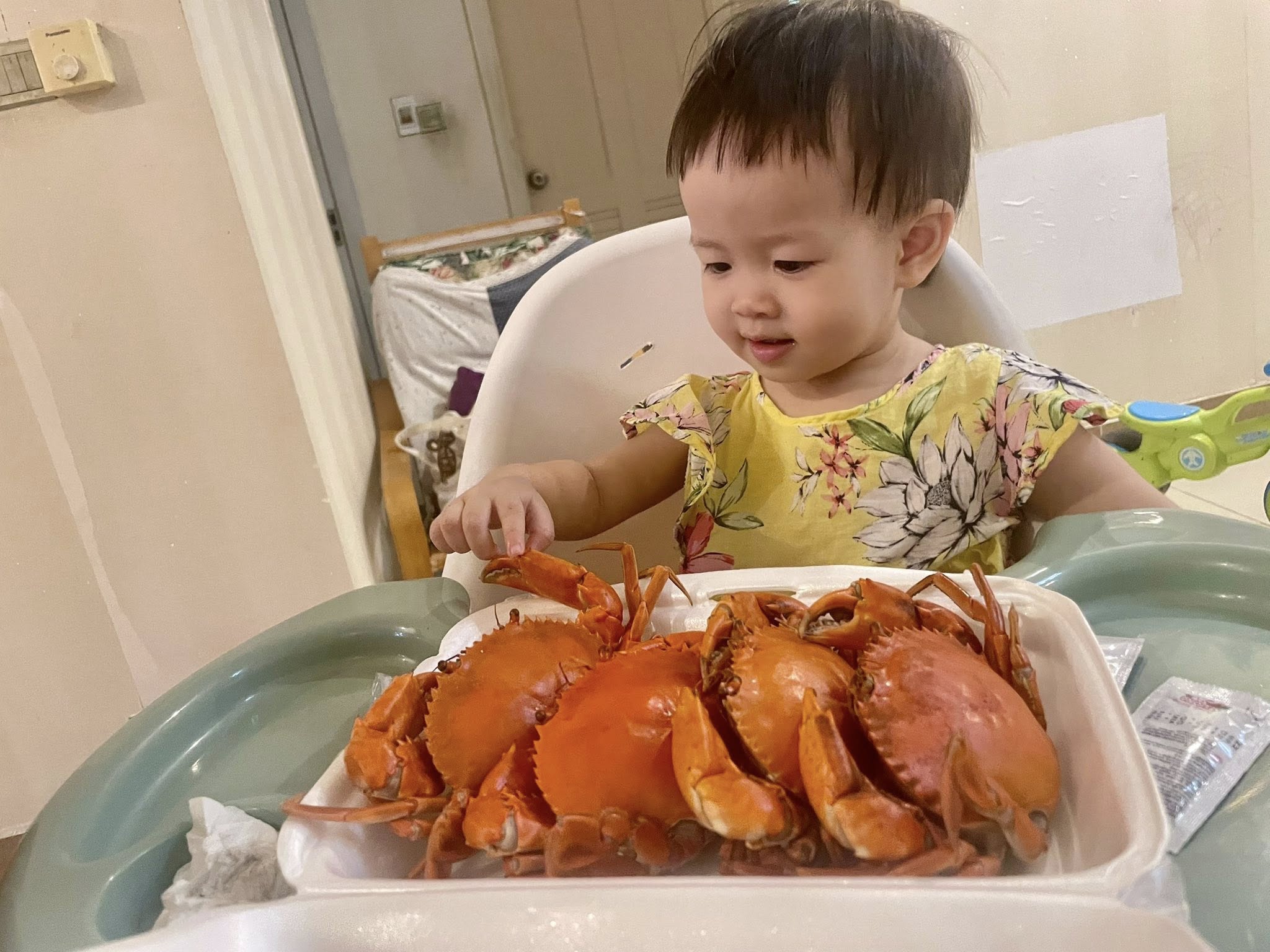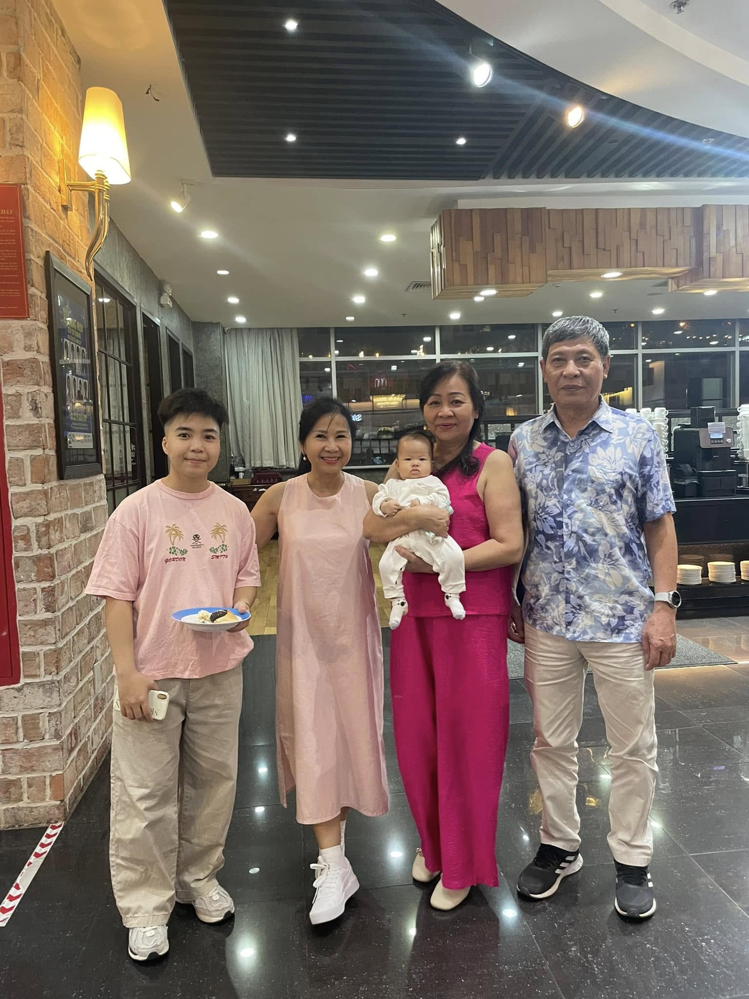 Bé Hoàng Đan đi dự buffet với các ông bà nội ngoại.
