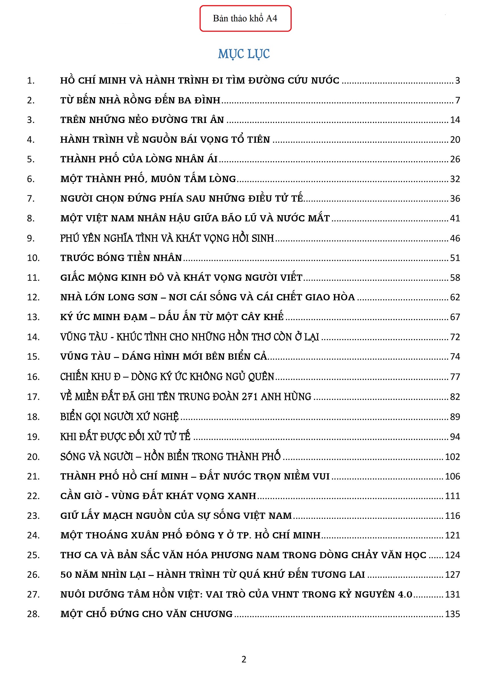 Dưới đây là Mục lục trên bản thảo khổ A4.