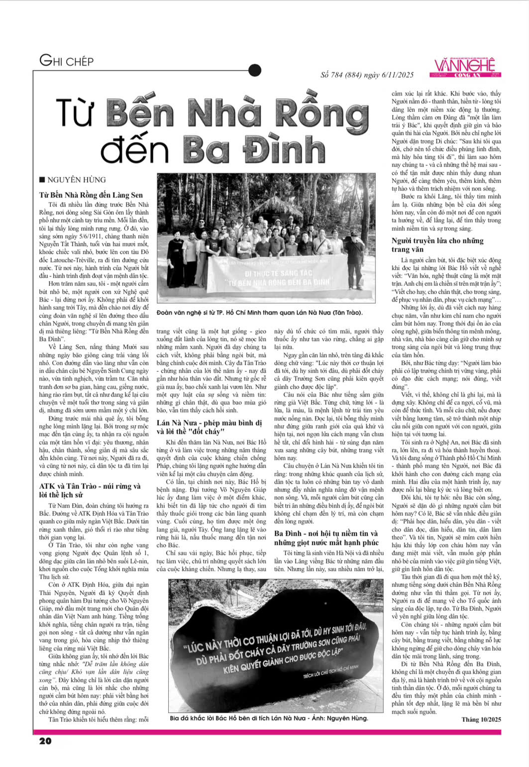Ghi chép “Từ Bến Nhà Rồng đến Ba Đình” được viết sau chuyến đi thực tế sáng tác năm 2025 – một hành trình đầy ý nghĩa của Đoàn Văn nghệ sĩ TP. Hồ Chí Minh do Liên hiệp các Hội Văn học Nghệ thuật TP. Hồ Chí Minh tổ chức.