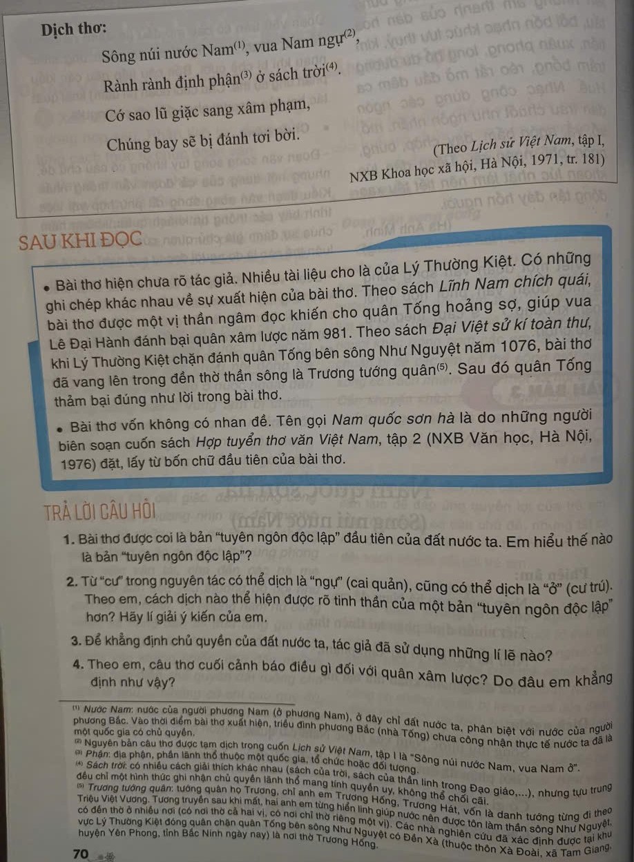 - Về tác giả và nguồn gốc bài thơ 'Nam quốc sơn hà'